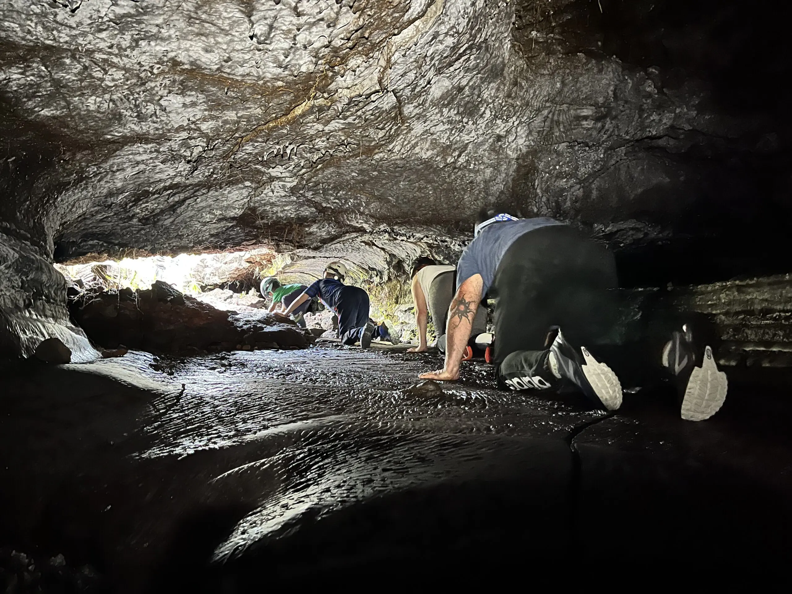 Avant l’immersion, une petite marche d’approche facile sur une coulée de lave pāhoehoe au milieu d’une végétation spécifique, dans un cadre volcanique remarquable. Tout en profitant de l’environnement, nous prendrons le temps de contextualiser l’île, sa formation, ses volcans, les éruptions… pour nous amener tout tranquillement jusqu’à l’entrée de la cavité.